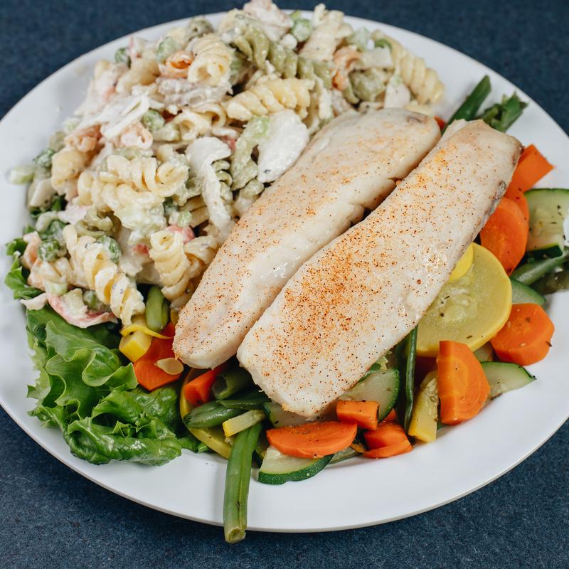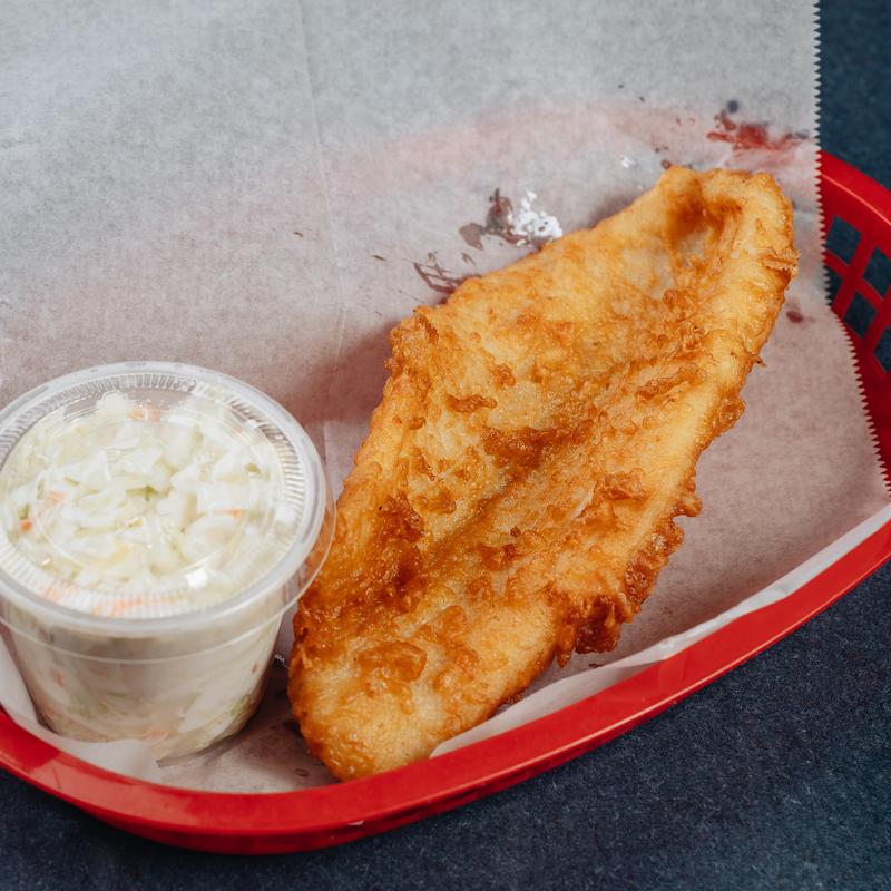 Thin & Crispy Batter Fried | Served with House Fries & Cole Slaw | Upgrades: Seafood Pasta Salad $1 | Hush Puppies $1 | Cup of Chowder $2 | Steak Fries $1/Sweet Potato Fries $2 | Dinner Salad $2 | Vegetables $2